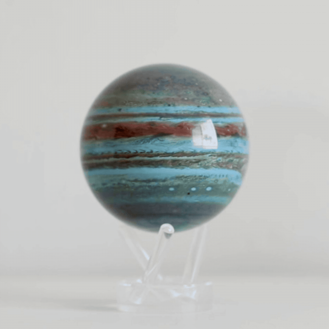 Each globe has a transparent outer shell made from carefully selected, high-quality acrylic. This external layer remains stationary while an internal one spins using advanced magnets for torque and solar cells to power the movement.